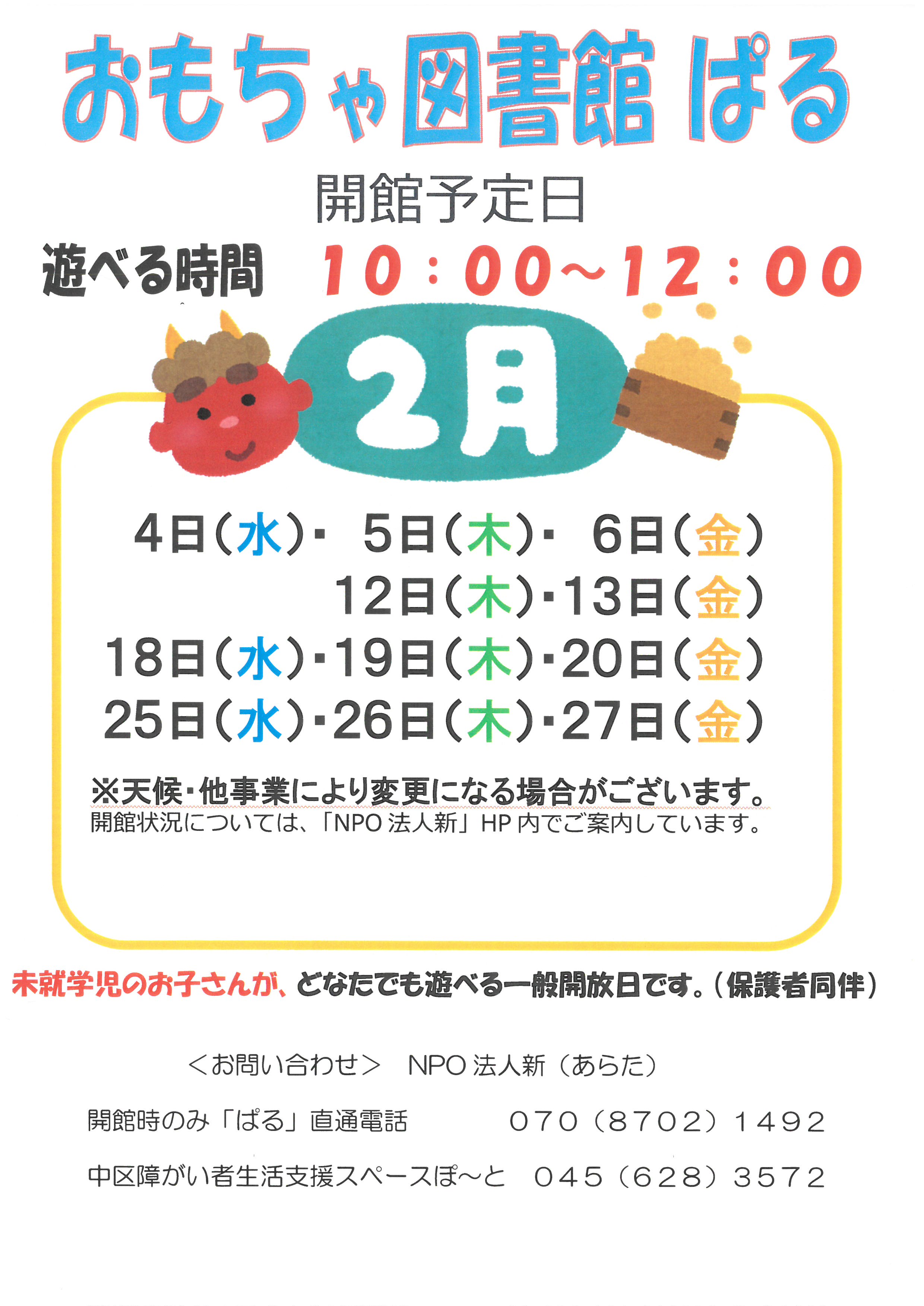 おもちゃ図書館ぱる2月の開館予定